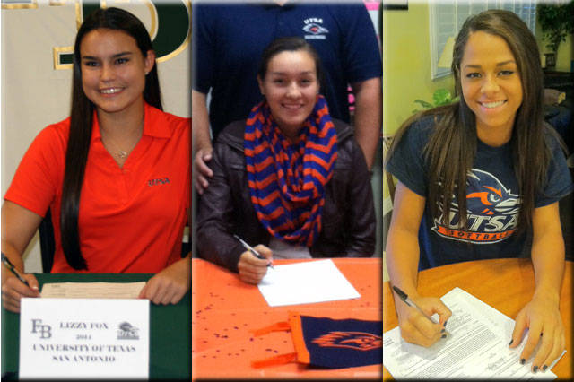 Lizzy Fox (Ft. Bend Christian Academy) (left), signed with the University of Texas at San Antonio Softball